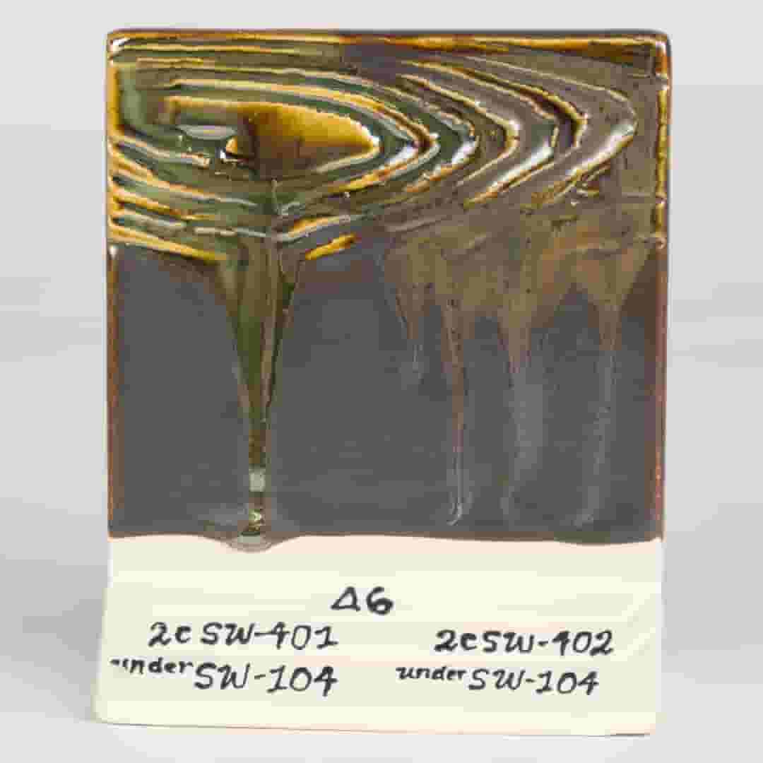 Stoneware matte glazes range from solid shades to those that create interesting color variations as they move and break. Application thinkness is the key to making mattes work for you. Chips shown are fired flat on a white clay body fired to cone 6 oxidation and cone 10 reduction. The choice of clay body, the thickness of glaze application, the firing process, and temperature will affect the fired results.